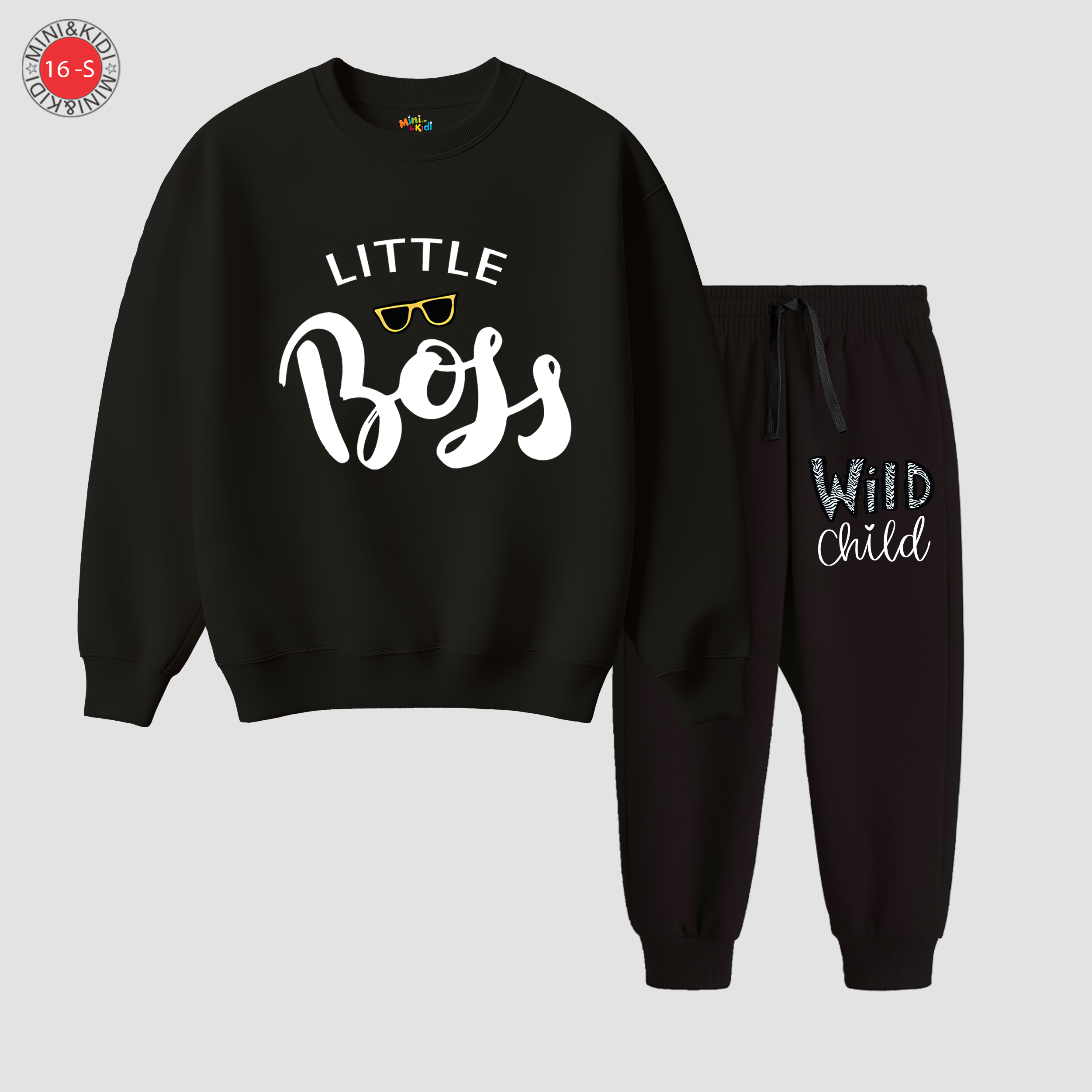 Cozy and stylish sweatshirt & trouser set for kids, made from soft polyester fleece with high-quality digital printing for long-lasting color and comfort.